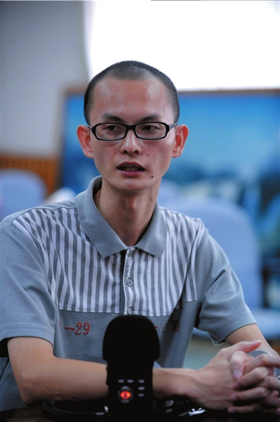 東莞一個看守所內,犯罪嫌疑人十三少接受記者采訪。本報記者歐陽曉菲攝