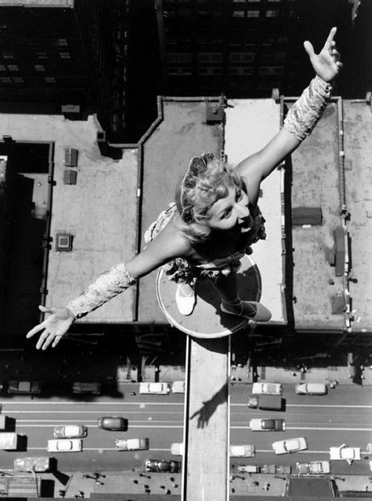 在國(guó)外一個(gè)論壇上看到這幾張老照片時(shí),被震憾了。有頭暈?zāi)垦5母杏X(jué),同時(shí)也非常佩服高樓上的表演者和攝影師?上,目前我只知道這些照片大約是1955年在芝加哥拍攝的,不知道表演者和攝影師姓甚名誰(shuí)。