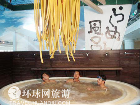 卡通里的櫻桃小丸子時常天馬行空,甚至夢見和美食一起游泳,而現(xiàn)在現(xiàn)實生活中真的有這樣的事!日本溫泉勝地箱根出現(xiàn)了全球第一個拉面溫泉--游客泡的“湯”,不但弄得和碗里面喝的拉面高湯一模一樣,池子還作成碗的造型,可說創(chuàng)意十足。該溫泉位于日本富士山腳箱根小涌園溫泉主題公園“悠內(nèi)三”內(nèi),大家去箱根旅游時可以去嘗試一下。