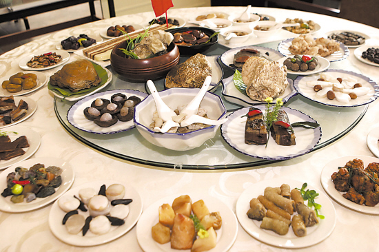 下面是奇石收藏家花了十幾年的時間,在全國各地收集的酷似食物菜肴的奇石,“制成”的一桌有近40種不同“菜肴”、只供視覺“食用”的“盛宴”。這桌“石頭宴”所用的石頭來自各地,基本上都是天然形成的,與人們?nèi)粘J秤玫氖澄锏纳珴尚螤罘浅=咏D銜吹奖普娴南覃u肉、花生米、豬肉、龍眼、青豆等等食品,有些石頭簡直讓你真假難辨!