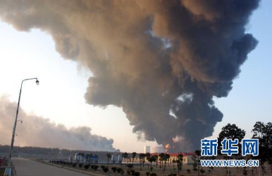 12月18日,華辰能源丙烯罐起火,濃煙沖天。新華社發(fā)(王洪戰(zhàn)攝)