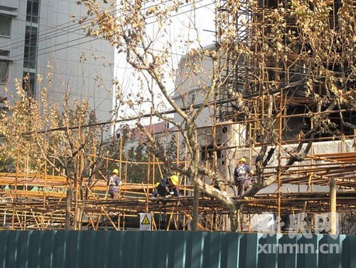 50余名建筑工人進(jìn)駐兩幢未過火大樓施工現(xiàn)場(chǎng)。新民網(wǎng)記者胡彥珣資料圖