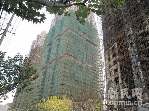上海失火高樓換上新防護(hù)網(wǎng) 居民陸續(xù)回搬(圖)