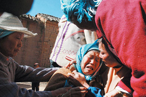 親屬們正在安慰泣不成聲的奶奶