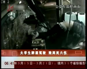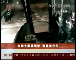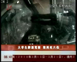 昨日,黃石市交警支隊(duì)相關(guān)負(fù)責(zé)人介紹,當(dāng)晚9時(shí)36分,黃石理工學(xué)院學(xué)生謝某醉酒后,駕駛一輛深圳號(hào)牌的現(xiàn)代牌小車(chē),由市政府路口往磁湖路方向行駛。途經(jīng)桂林北路理工學(xué)院中門(mén)路段時(shí),先撞上行人后與公交車(chē)相撞,致使1名行人和公交車(chē)上的1名乘客死亡,另有6人受傷。