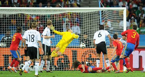 今天凌晨2:30,南非世界杯第二場(chǎng)半決賽在德班球場(chǎng)拉開(kāi)戰(zhàn)幕,由德國(guó)隊(duì)迎戰(zhàn)西班牙。憑借普約爾在第73分鐘的頭球破門(mén),西班牙隊(duì)1-0力克德國(guó),與荷蘭隊(duì)會(huì)師決賽。