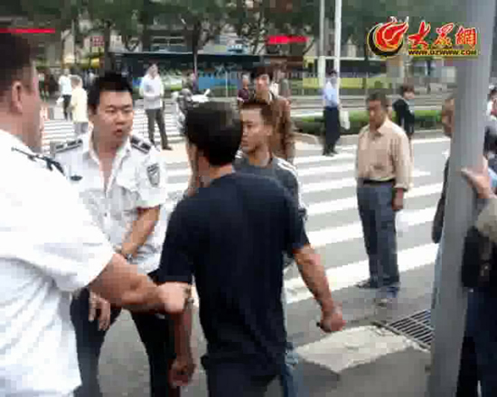 9月8日上午9點(diǎn)40分左右,濟(jì)南市歷下區(qū)城管執(zhí)法局執(zhí)法人員在濟(jì)南市中心醫(yī)院巡邏執(zhí)法時(shí),發(fā)現(xiàn)醫(yī)院門口一“肉夾饃”商販占道經(jīng)營(yíng),遂上前進(jìn)行勸說,并將其做“肉夾饃”的刀具等沒收。當(dāng)執(zhí)法人員預(yù)扣留商販三輪車時(shí),受到商販父子的聯(lián)合抗法。