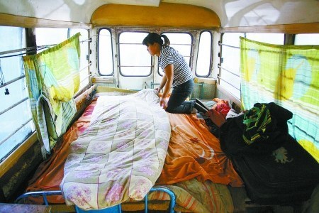 打工23年仍望房興嘆,馮增只好將五口之家安在一部即將報(bào)廢的中巴車上——“史上最牛房車”就這樣誕生了,一住就是5年。馮增的“家”在河南省鄭州市的鄭蔚路上,居住面積不到十平方米。這座房屋特別之處在于,它采用的不是鋼筋混凝土結(jié)構(gòu),而是金屬材料,外加四個(gè)車輪。這棟住宅絕對(duì)能抵御八級(jí)地震。但它的缺陷是冬天冷、夏天熱。
