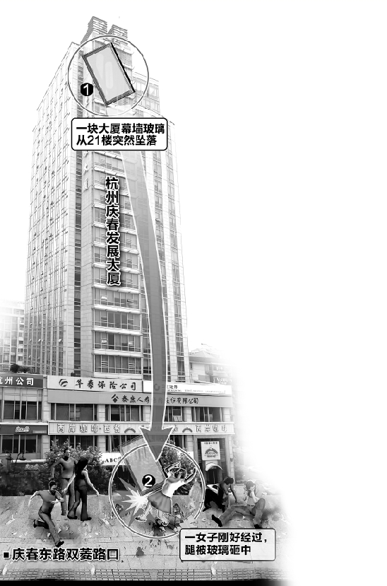 昨天早上7點(diǎn)多,杭州慶春東路,慶春發(fā)展大廈一片外墻玻璃突然從空中掉落,正從樓下經(jīng)過的女孩不幸中招,將面臨可能被截肢的命運(yùn)。