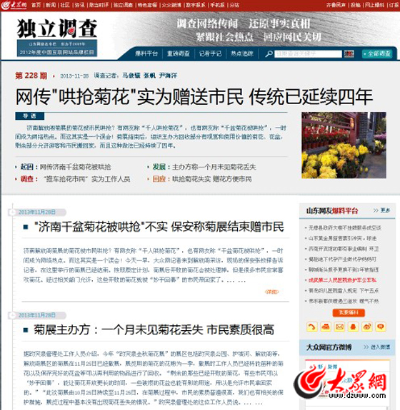 大眾網(wǎng)2013年11月28日第228期獨(dú)立調(diào)查率先戳穿謠言還原真相