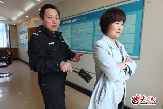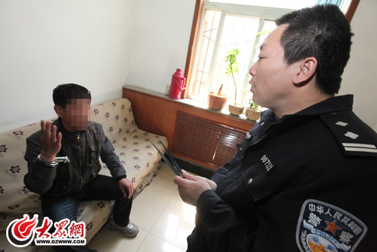 公交分局第五派出所副所長蘇峰用啞語與聾啞盜竊犯罪嫌疑人交流,審問作案細節(jié)。(記者 曹亮 攝)