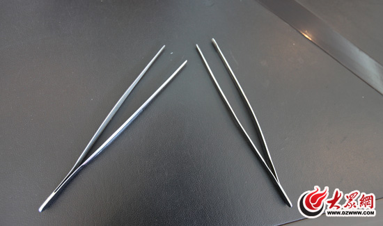 在濟南公安公共交通分局第五派出所的會議桌上,一把30厘米多長的鑷子映入眼簾,第五派出所副所長蘇峰告訴記者,這把鑷子就是三人扒竊團伙的常用工具。鑷子頭上被涂了約半厘米長的黏膠,嫌疑人看到獵物后,瞄準(zhǔn)目標(biāo),稍一用勁,不到兩秒鐘就輕而易舉地將錢包、手機等物品夾出,夾出后迅速轉(zhuǎn)移或塞至腋下。10日中午在彩石集市上看到一女青年口袋外露出一條手機鏈,不到兩秒就夾了出來,民警通知受害人時,女孩還不知何物被盜。