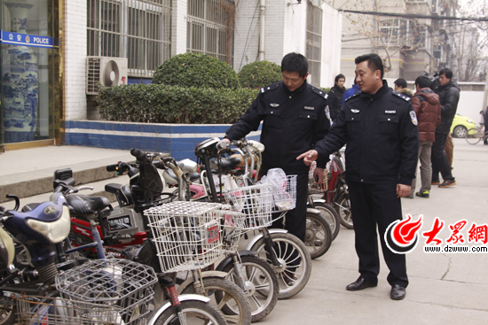 槐蔭公安分局刑警正在檢查被追繳回的失竊電動(dòng)車