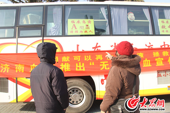 同樣是泉城廣場(chǎng),在隸屬于山東省血液中心濟(jì)南血站的流動(dòng)采血車上,獻(xiàn)血情況大致相同,不過(guò),在獻(xiàn)血車上卻掛出了A型血告急的牌子。