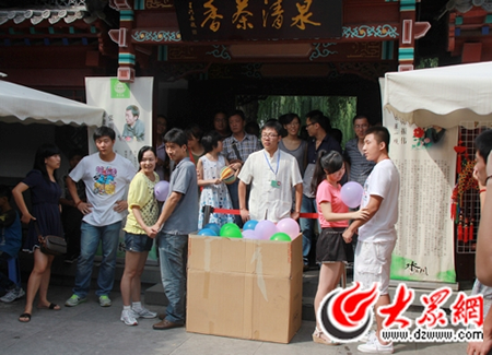 大眾網(wǎng)濟(jì)南8月23日訊(記者 姜洋 韋輝)一年一度的七夕伴著燦爛的陽光到來了。七夕不僅是最具浪漫色彩的“中國情人節(jié)”,更是民俗薈萃的節(jié)日。今天下午,趵突泉公園在濼苑小舞臺(tái)推出的“七夕民俗歡樂新體驗(yàn)”活動(dòng),吸引諸多有情人共享浪漫,重溫民俗。在現(xiàn)場(chǎng),記者加入其中,切實(shí)體驗(yàn)了一回七夕民俗的浪漫與溫情。