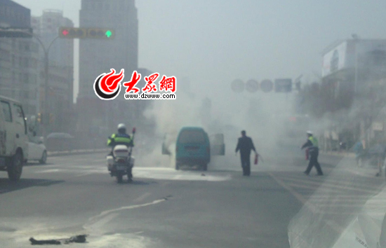 “經(jīng)十路上一輛面包車自燃了!”中午1點(diǎn)半,濟(jì)南的網(wǎng)友宋先生向本網(wǎng)爆料,宋先生說(shuō),事發(fā)時(shí)是中午1點(diǎn)左右,他從經(jīng)十路由東向西行駛,遠(yuǎn)遠(yuǎn)便看到一輛面包車底部冒出濃煙,一輛K系列公交車行駛至此路段后,迅速?吭诼愤,一名中年男性公交車司機(jī)拿出滅火器開(kāi)始向汽車底部噴射,隨后趕到的交警也幫其滅火!艾F(xiàn)場(chǎng)只看到冒煙,并沒(méi)有明火,車的外觀也沒(méi)有燒毀。”宋先生說(shuō)。