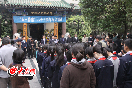 大眾網(wǎng)濟(jì)南5月3日訊(記者 赫洋 趙洪棟)今年的5月3日,是“濟(jì)南慘案”85周年紀(jì)念日。今天上午,山東省和濟(jì)南市民革、黃埔軍校同學(xué)會(huì)成員在趵突泉公園“濟(jì)南慘案”紀(jì)念園內(nèi)舉行紀(jì)念活動(dòng),紀(jì)念在“濟(jì)南慘案”中遇難的同胞,警示后人。