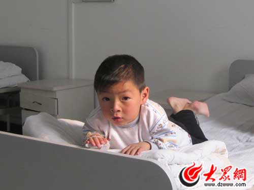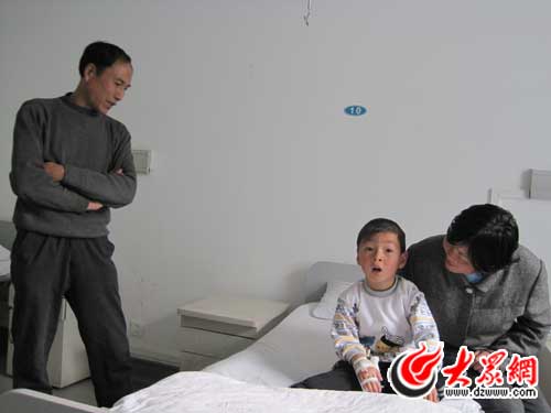在濟(jì)南軍區(qū)心血管病研究所,記者見(jiàn)到了小永康和他的養(yǎng)父母。養(yǎng)父尹加元告訴記者,2006年4月,尹加元在客運(yùn)汽車(chē)上賣(mài)票謀生時(shí),車(chē)輛行至平邑縣民政局門(mén)口,一群圍觀者引起了尹加元的好奇,撥開(kāi)人群,他看見(jiàn)一個(gè)嬰兒奄奄一息地躺在紙箱中,頭部有多處針眼,蒼蠅和蚊子不斷落在嬰兒的臉上?粗蓱z的嬰兒,尹加元便抱起紙箱中的他帶回了家。