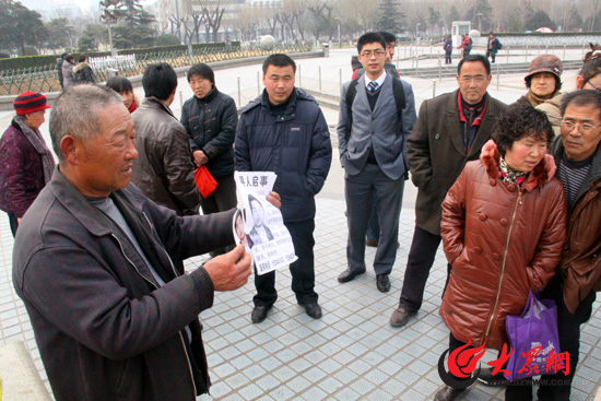 段世江在泉城廣場尋子,引起眾多市民圍觀。