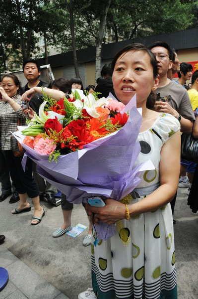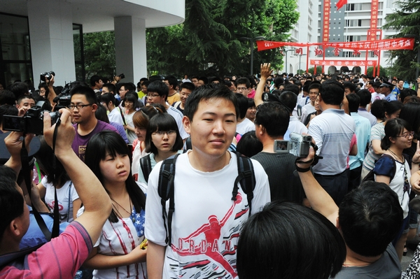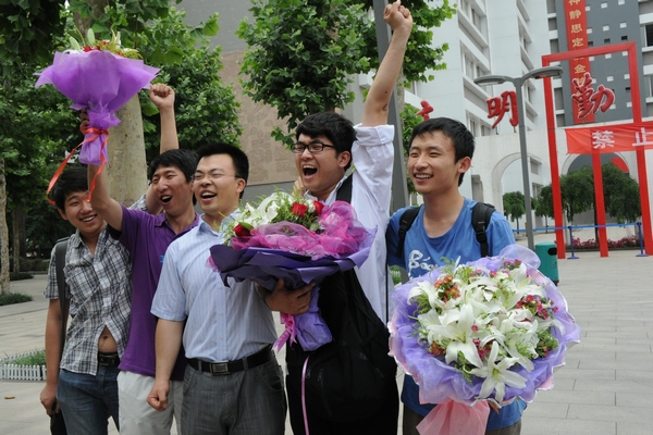 鮮花簇?fù)碛呖悸淠?考生齊呼:該放松了!