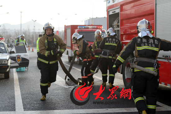大眾網(wǎng)濟(jì)南12月31日訊(記者 尹海洋 韋輝)雪霧天氣下,在高速路上發(fā)生交通事故怎么辦?怎樣快速妥善的處理事故?今天下午,濟(jì)南市交警支隊(duì)與濟(jì)南消防、路政、醫(yī)療救援等部門組成7小組,在茂嶺山3號(hào)路南段500米處舉行了高速公路應(yīng)急聯(lián)動(dòng)實(shí)戰(zhàn)演練。