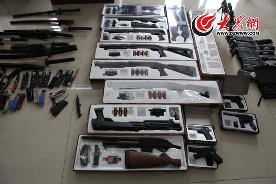 大眾網(wǎng)濟(jì)南5月14日訊(記者 張建)自今年初以來,濟(jì)南市濟(jì)青高速服務(wù)北區(qū)某超市女老板郭某為了賺更多的錢,在超市內(nèi)非法銷售起了國家明令禁止買賣的仿真槍支、彈藥,以及管制刀具。5月11日晚,這些仿真槍支和管制刀具被夜間巡邏的民警當(dāng)場(chǎng)查扣,郭某也被治安拘留。