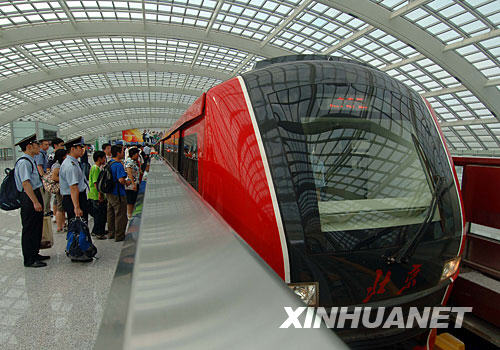 7月19日,乘客在首都國際機場T3航站樓內(nèi)準備搭乘機場快軌列車。 當日,北京地鐵10號線一期、機場線和奧運支線三條新地鐵線路同時正式開通試運營,新華社記者公磊攝