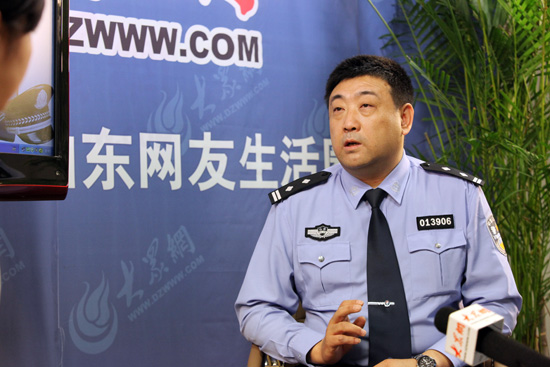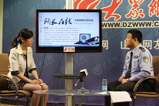 5月17日上午,濟南市公安局歷下分局東關(guān)大街派出所所長劉衛(wèi)東做客“所長在線”與網(wǎng)友讀者互動交流。(曹亮 攝)