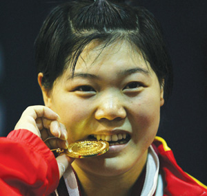 在多哈進(jìn)行的世界舉重錦標(biāo)賽女子75公斤級(jí)的比賽中,山東姑娘劉春紅以159公斤、285公斤的成績(jī)獲得挺舉和總成績(jī)兩項(xiàng)冠軍,并打破世界紀(jì)錄——