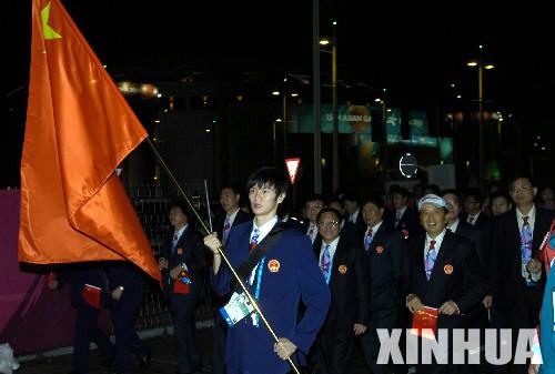 12月1日,第15屆亞運(yùn)會(huì)開幕式在卡塔爾首都多哈哈里發(fā)體育場(chǎng)隆重舉行。這是中國(guó)代表團(tuán)等待入場(chǎng)。 新華社記者楊世堯攝