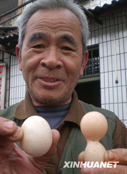 柳州市動物疫病預(yù)防控制中心獸醫(yī)稱,母雞產(chǎn)下“葫蘆蛋”實(shí)屬罕見,原因很有可能與母雞的內(nèi)分泌失調(diào)有關(guān)。新華社發(fā)(李書厚 攝)