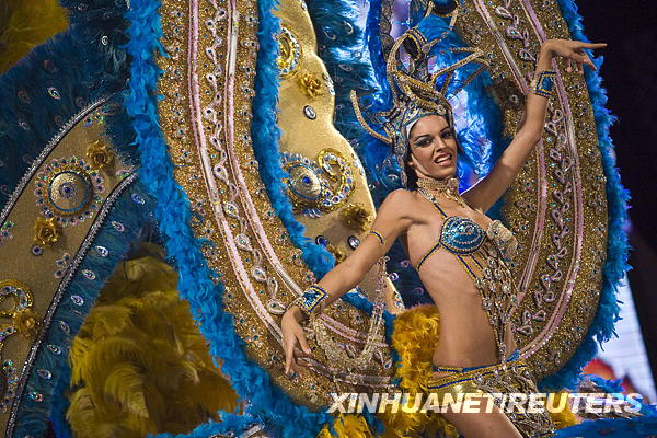 2月5日,在西班牙大加那利島的拉斯帕爾馬斯,一名表演者身穿名為“阿凡達(dá)”的舞臺(tái)服裝參加狂歡節(jié)活動(dòng)。新華社/路透