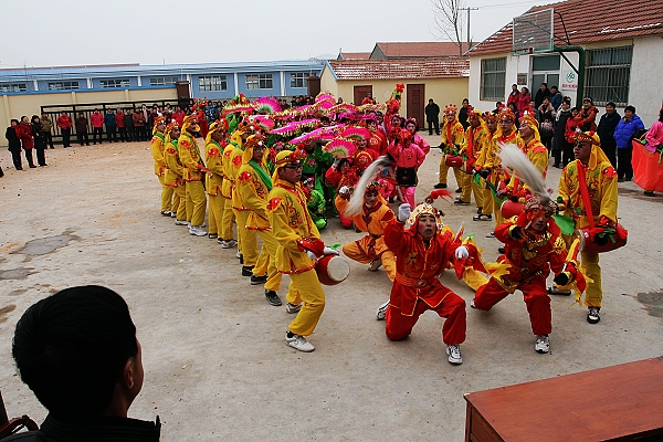海陽邢家村秧歌隊在村委大員為村民演出,他們剛剛從臨村串場歸來,一天要演出十幾場