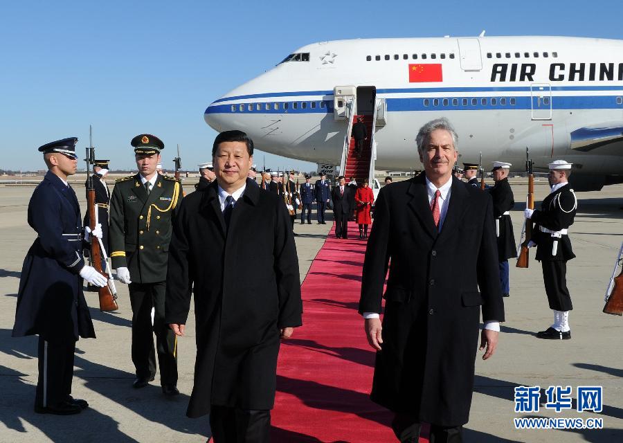 當(dāng)?shù)貢r(shí)間2月13日,應(yīng)美利堅(jiān)合眾國(guó)副總統(tǒng)拜登邀請(qǐng),中國(guó)國(guó)家副主席習(xí)近平抵達(dá)華盛頓,開始對(duì)美國(guó)進(jìn)行正式訪問。這是美國(guó)常務(wù)副國(guó)務(wù)卿伯恩斯到機(jī)場(chǎng)迎接。新華社記者 劉建生 攝