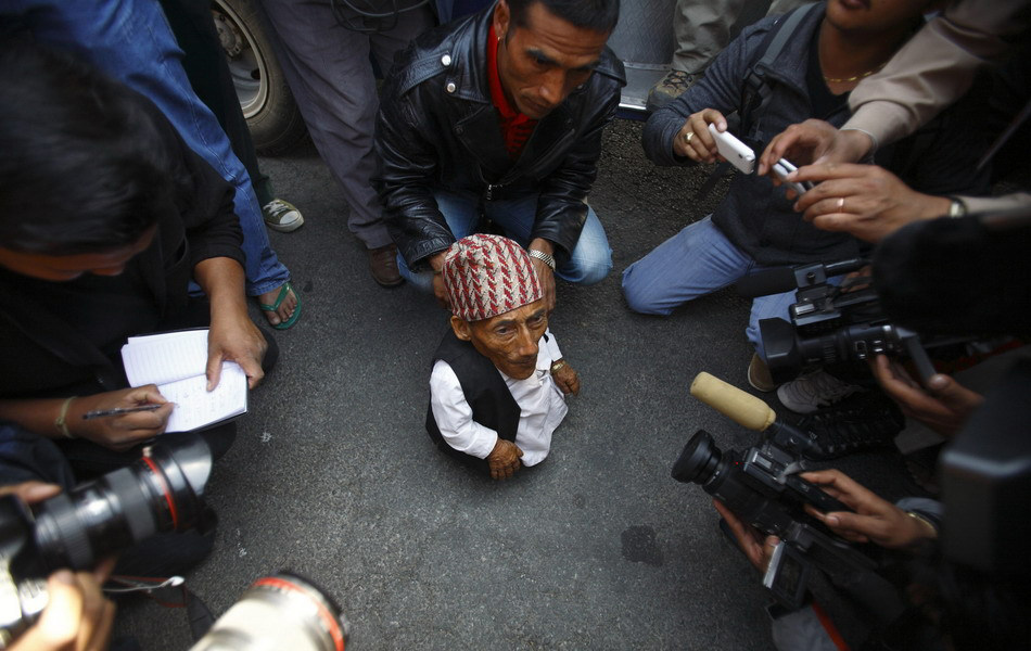 尼泊爾男子錢德拉·巴哈杜爾·當(dāng)吉現(xiàn)年72歲,自稱身高56厘米、體重12公斤,申報(bào)吉尼斯世界紀(jì)錄。