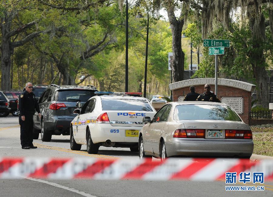 3月6日,在美國佛羅里達(dá)州杰克遜維爾市,當(dāng)?shù)刂伟补僭诎l(fā)生槍擊案的學(xué)校附近疏導(dǎo)交通。杰克遜維爾市一所高中當(dāng)天發(fā)生槍擊事件,造成2人死亡,原因仍在調(diào)查中。 新華社/美聯(lián)