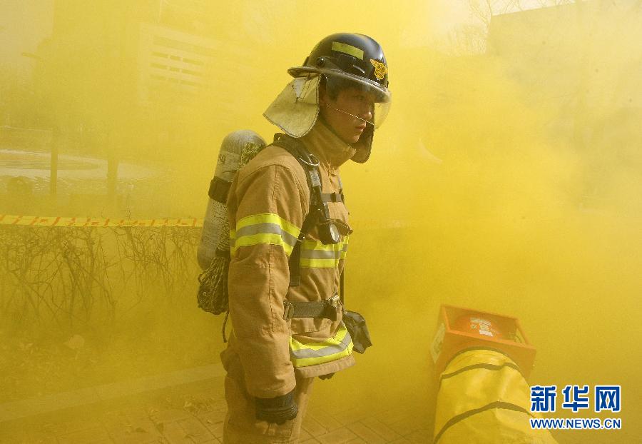 3月9日,韓國消防員在首爾參加反恐演習。韓國首爾當日舉行反恐演習,以應(yīng)對即將到來的首爾核峰會。 新華社發(fā)(樸真熙攝)