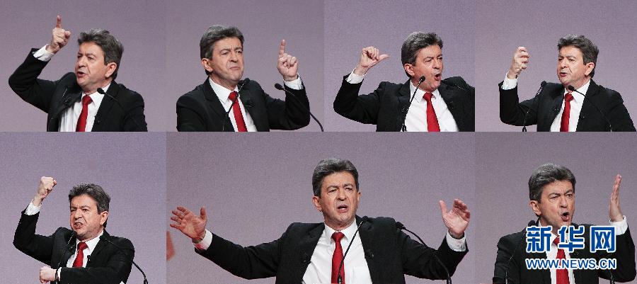 最新民調(diào)顯示,梅朗雄在此次總統(tǒng)大選中強(qiáng)勢(shì)崛起,與極右翼政黨國(guó)民陣線的候選人瑪麗娜·勒龐的首輪意向投票相近,預(yù)計(jì)將達(dá)15%左右,可能成為左右大選的另一股力量,最新民調(diào)已將他列為“大選第三人”,排在競(jìng)選連任的薩科齊和社會(huì)黨領(lǐng)袖奧朗德之后,以至“梅朗雄現(xiàn)象”或“梅朗雄熱”成了當(dāng)前的熱門詞。新華社記者高靜攝