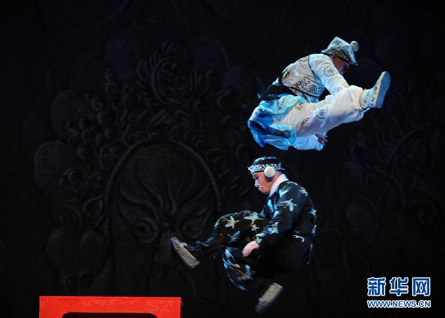 5月7日,在土耳其伊斯坦布爾,京劇表演藝術家在舞臺上表演劇目《三岔口》。作為“2012年土耳其中國文化年”的主要活動之一,北京京劇團當天在第18屆伊斯坦布爾國際戲劇節(jié)上展示國粹京劇,為當?shù)孛癖姳硌萘恕栋酝鮿e姬》、《三岔口》、《貴妃醉酒》等經典劇目。新華社記者馬研攝