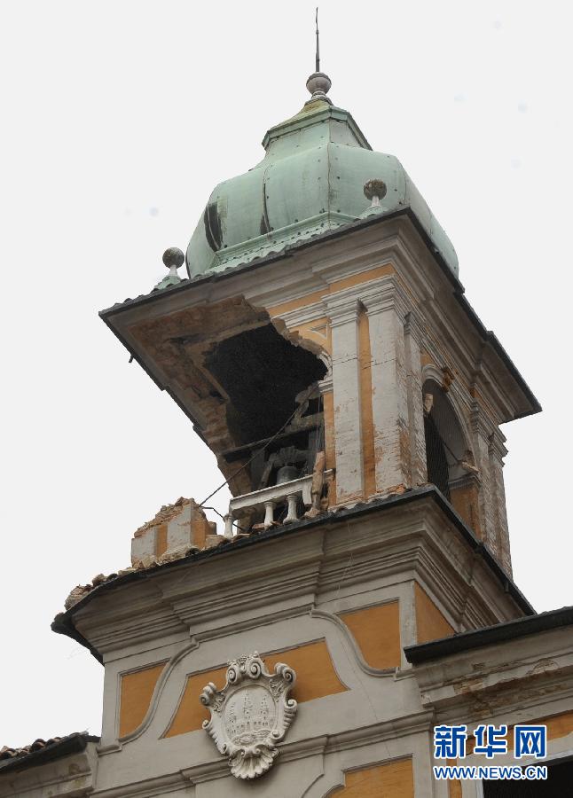 5月20日,意大利菲納萊艾米利亞市政廳的鐘塔在地震中毀壞。