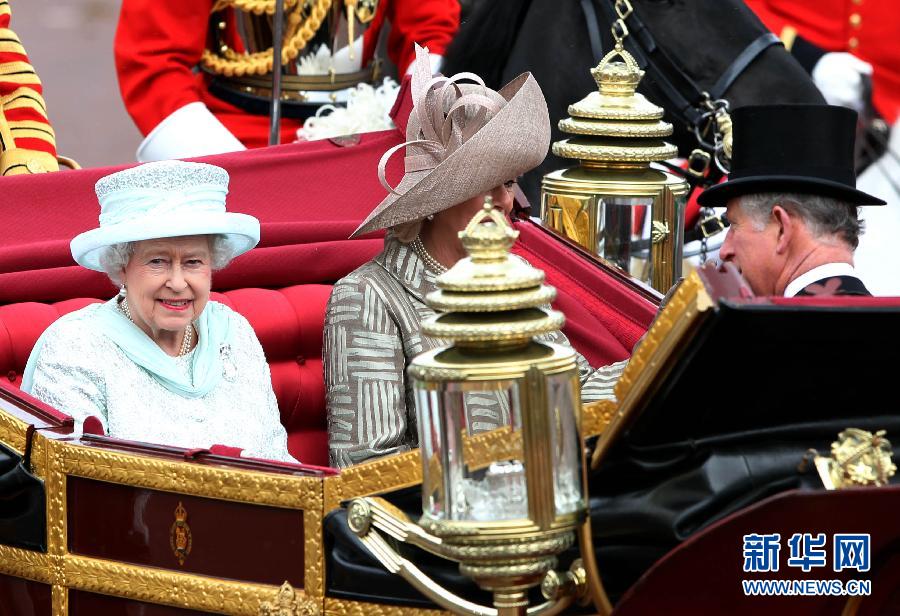 6月5日,在英國(guó)倫敦,英國(guó)女王伊麗莎白二世、王儲(chǔ)查爾斯和查爾斯的夫人卡米拉乘馬車返回白金漢宮。 5日是英國(guó)為伊麗莎白二世即位60周年舉行“鉆石慶典”的最后一天。女王坐馬車從威斯敏斯特宮巡游至白金漢宮,隨后將觀看空軍飛行表演。新華社發(fā)(唐詩(shī)攝)