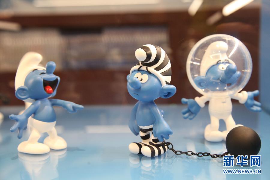6月25日,在比利時(shí)首都布魯塞爾,“藍(lán)精靈”玩偶陳列在“藍(lán)精靈”專賣店。當(dāng)日是“藍(lán)精靈”之父佩約的誕辰日,也是“全球藍(lán)精靈日”。首家“藍(lán)精靈”專賣店在比利時(shí)首都布魯塞爾市中心的卡通塑像博物館里落成!八{(lán)精靈”是風(fēng)靡世界的比利時(shí)卡通形象,“藍(lán)精靈”系列漫畫也在80多個(gè)國(guó)家被翻譯成35種語(yǔ)言! ⌒氯A社記者王曉郡攝