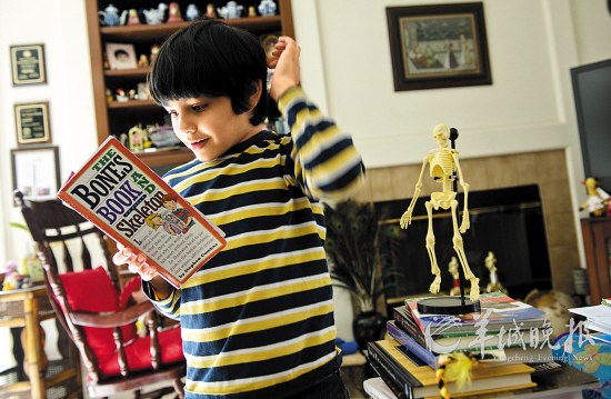 塔尼什克在閱讀人體骨骼知識(shí)的書。