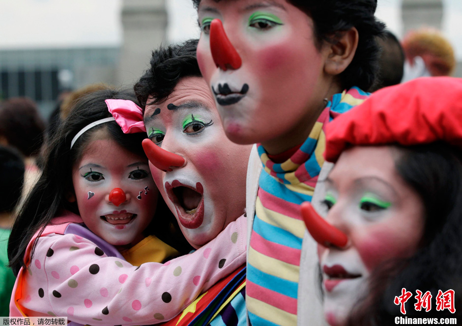當(dāng)?shù)貢r(shí)間2012年7月18日,墨西哥墨西哥城,數(shù)百名小丑參加一年一度的朝圣活動(dòng),向瓜達(dá)盧佩圣母表示感謝。