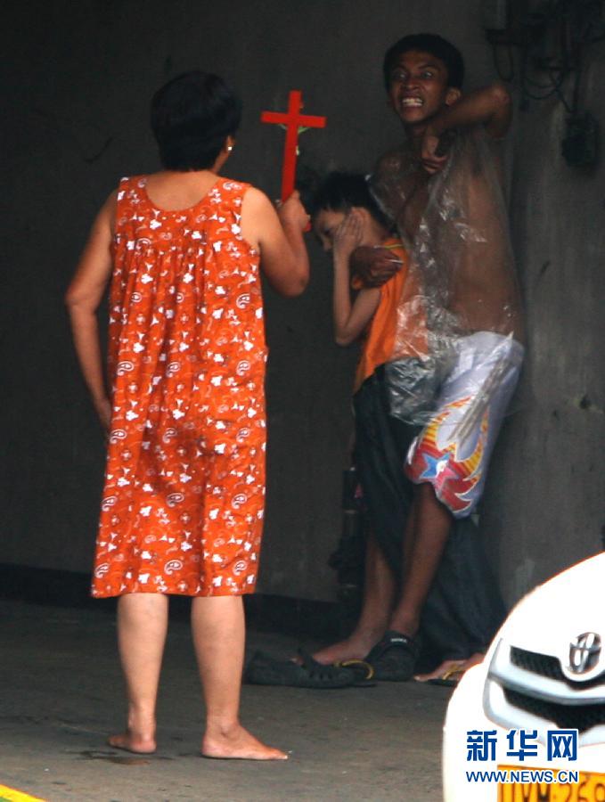 7月21日,在菲律賓大馬尼拉地區(qū)奎松市,一名男子劫持人質(zhì),該男子的母親在旁勸說。當(dāng)日,奎松市發(fā)生一起人質(zhì)劫持事件。拉米爾·帕爾帕然用冰錐劫持了一名9歲的男孩,當(dāng)?shù)鼐脚沙稣勁袑<液驮摲缸锵右扇说哪赣H對其進(jìn)行勸說,最終使其屈服并逮捕了他。9歲男孩被劫持近7小時(shí)后受輕傷,被迅速送往醫(yī)院接受治療。新華社發(fā)(烏馬利攝)