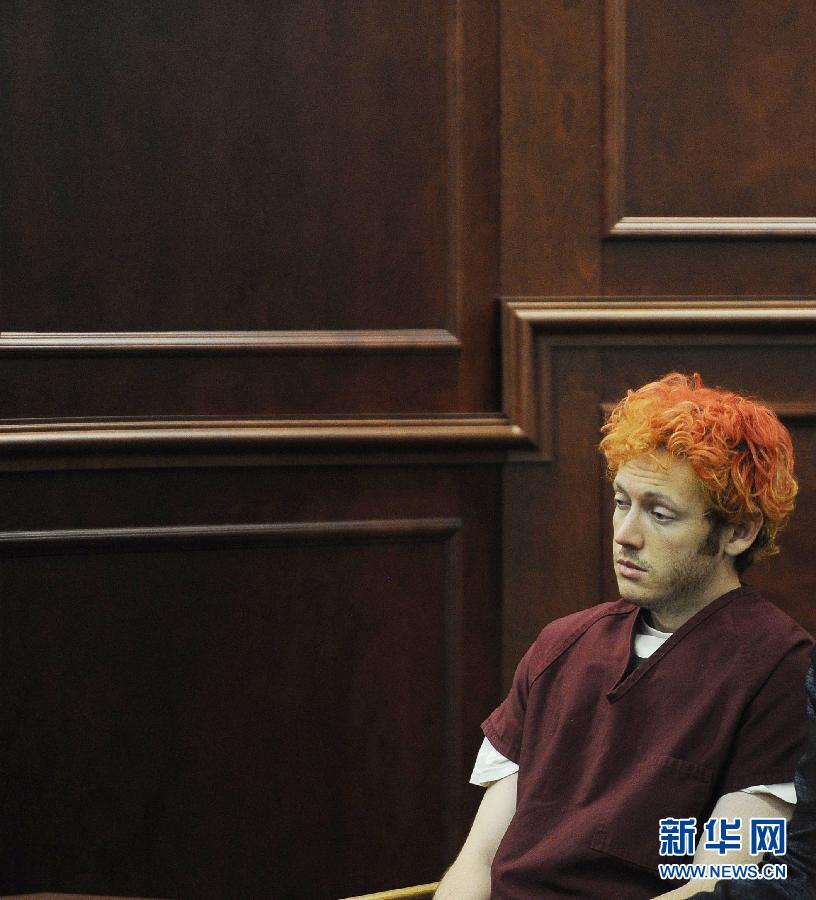 7月23日上午,美國(guó)科羅拉多州影院槍擊案犯罪嫌疑人霍姆斯在庭審現(xiàn)場(chǎng)。美國(guó)科羅拉多州奧羅拉市一家影院當(dāng)?shù)貢r(shí)間20日零時(shí)30分(北京時(shí)間14時(shí)30分)左右發(fā)生槍擊事件,一名頭戴防毒面具的男子持槍向正在觀影的人群掃射,造成至少12人死亡、59人受傷。新華社發(fā)