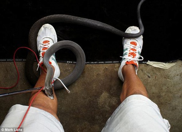 萊塔拍下自己腿部被致命毒蛇啃咬的瞬間,然而當(dāng)時(shí)他本人卻渾然不知。
