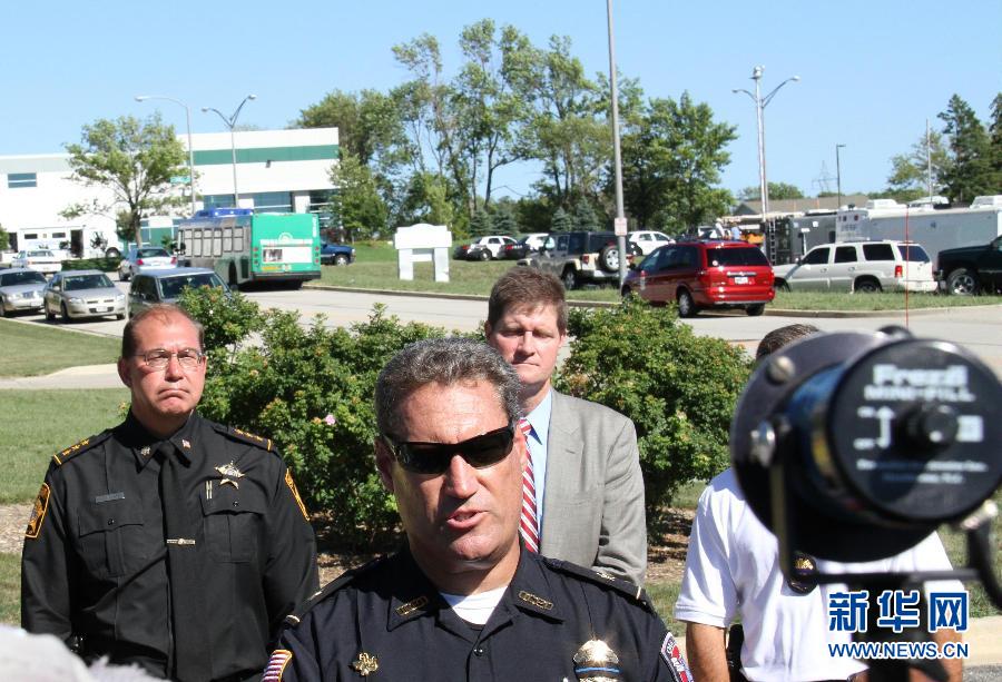 美國威斯康辛州發(fā)生槍擊事件致7死3傷 8月5日下午,在美國威斯康辛州奧克里克,當(dāng)?shù)鼐炀值囊幻l(fā)言人舉行新聞發(fā)布會(huì),通報(bào)槍擊事件進(jìn)展。當(dāng)日,美國威斯康辛州奧克里克地區(qū)的一座錫克教寺廟發(fā)生槍擊事件,共造成包括1名槍手在內(nèi)的7人死亡,另有3人受傷。 新華社記者閆亮攝