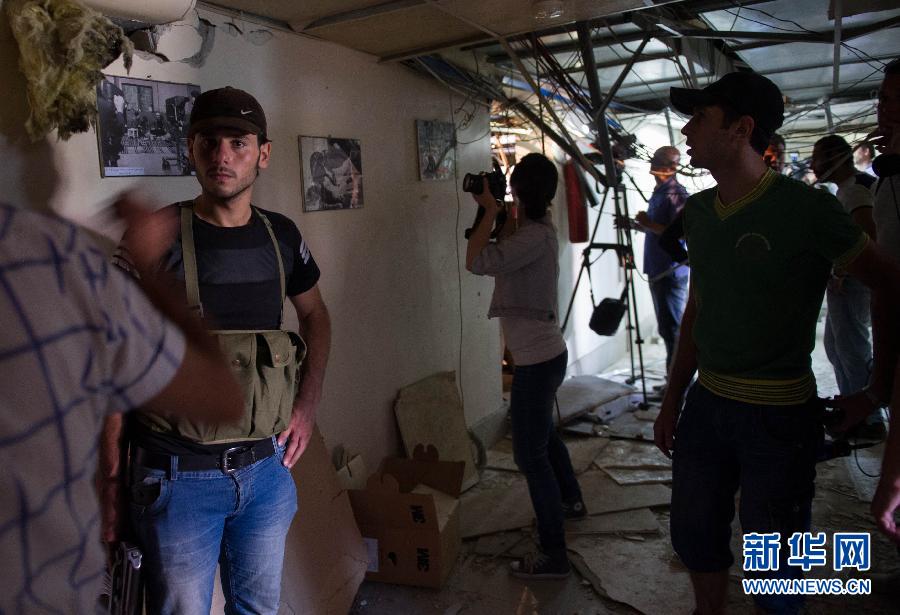 8月6日,在敘利亞首都大馬士革,警衛(wèi)在敘利亞國家電視臺大樓發(fā)生爆炸的樓層執(zhí)勤。當日,位于敘利亞首都大馬士革的敘國家電視臺大樓遭到爆炸襲擊,爆炸發(fā)生在大樓三層,目前已造成3名電視臺工作人員受傷。 新華社記者覃海石攝