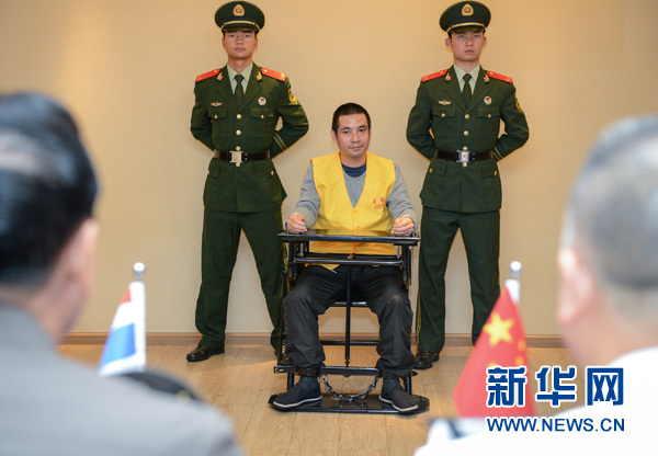 8月7日,中泰兩方代表向糯康宣讀審訊須知及其享有權(quán)利。近日,應(yīng)中國(guó)公安部邀請(qǐng),由泰國(guó)警察總署副總警監(jiān)班西里擔(dān)任團(tuán)長(zhǎng)的泰國(guó)高級(jí)警官代表團(tuán),來(lái)華提審“金三角”特大武裝販毒集團(tuán)及“10·5”案件主犯糯康等犯罪嫌疑人,并與中方交流通報(bào)“10·5”案件工作進(jìn)展情況。新華社記者 李鑫 攝